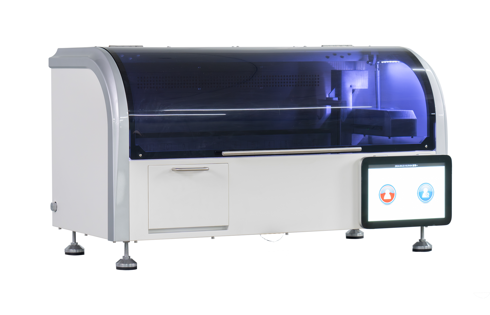 HD-400i自动染色机可根据不同的组织类型预设染色程序,智能软件控制染色过程,降低因操作带来的染色差异,通过程序预设将染色架按照设定的程序置于各液缸中达到自动染色的目的。
