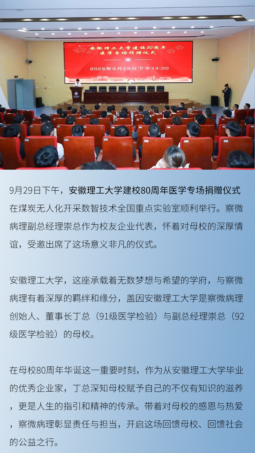 首页 > 新闻中心 > 公司新闻 > 情系母校 以爱回馈 | 察微病理爱心捐赠50万元设备,助力母校高质量发展